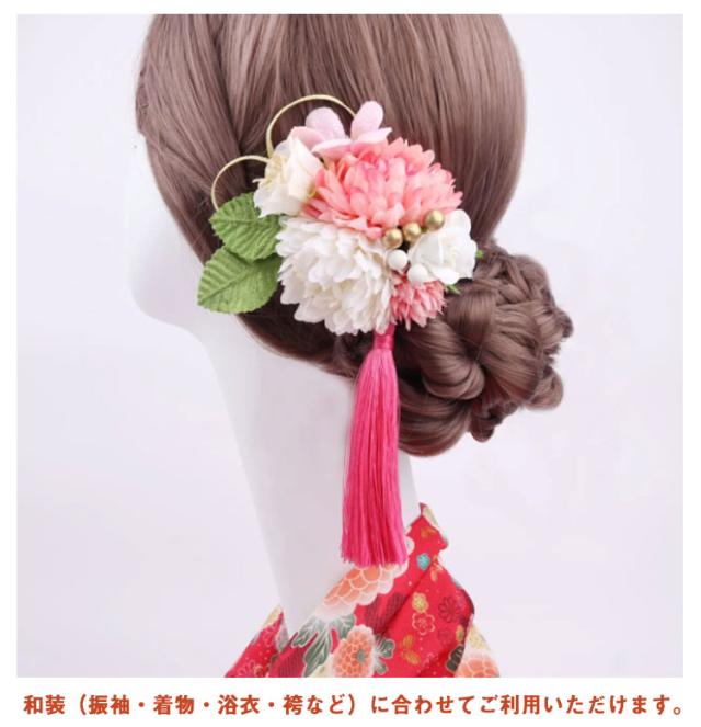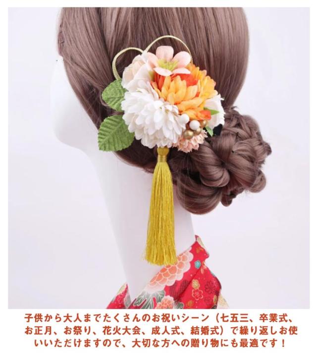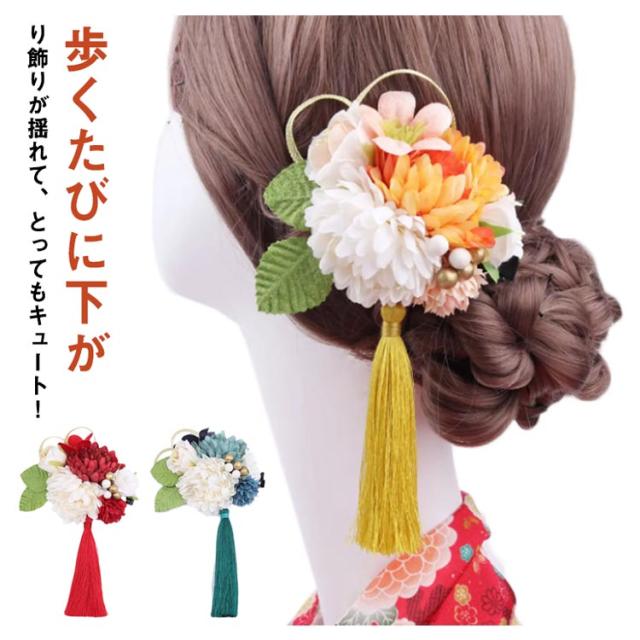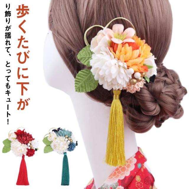 ちりめん 髪飾り 浴衣 ビラかんざし パッチン留め 袴 和装 花飾り 成人式 結婚式 花 七五三 着物 卒業式 卒園式 花盛り 桜 鈴 藤下がり ヘッドドレス ウェディング 三歳 七歳 女の子 キッズ 母の日 ギフト 手作り かわいい 送料無料