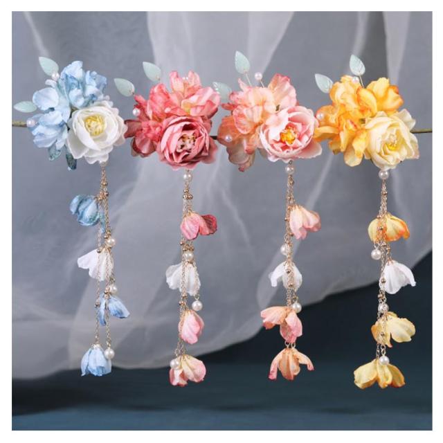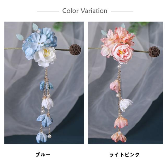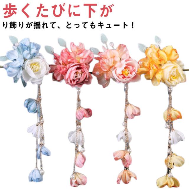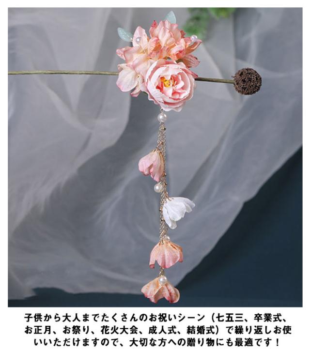 ちりめん 髪飾り 浴衣 ビラかんざし パッチン留め 袴 和装 成人式 結婚式 花飾り 花 花盛り 鈴 藤下がり ヘッドドレス ウェディング 七五三 着物 卒業式 卒園式 三歳 七歳 女の子 キッズ 母の日 ギフト 手作り かわいい 送料無料