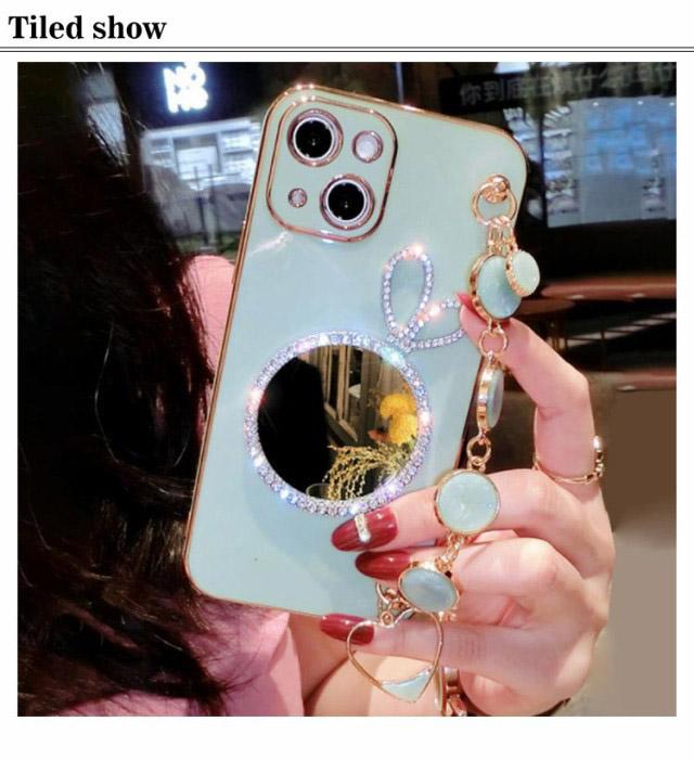 iPhone se ケース iPhone13 pro キラキラ 鏡付き ミラー付き 韓国 iPhone カバー iPhone13Pro iPhone13Promax スマホケース おしゃれ かわいい アイフォン ベルト ラインストーン
