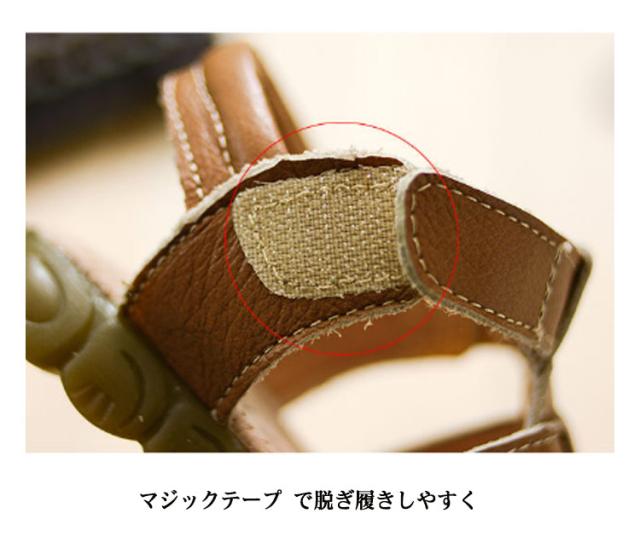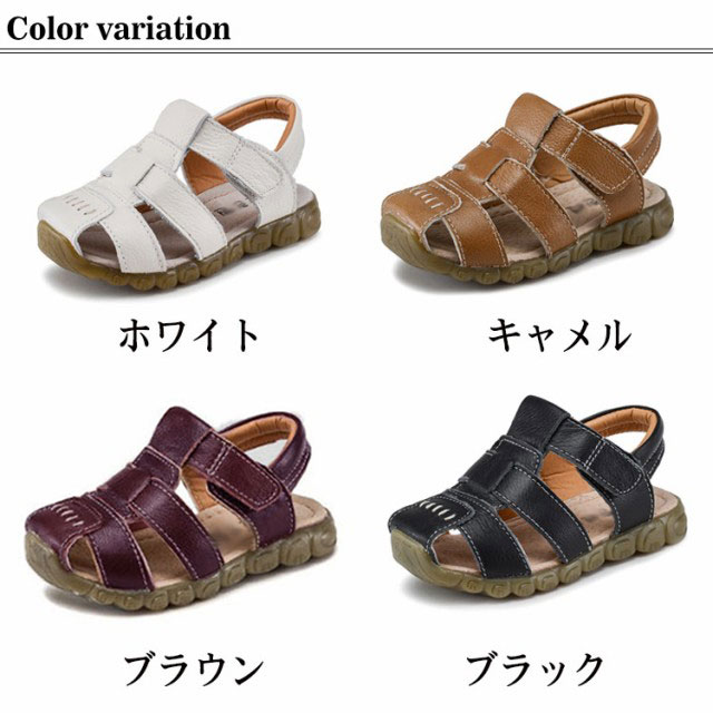 | 流行関係なく履いて頂けるデザインで、1足あると便利! つま先が覆われているので、しっかり固定されて小さいお子さんでも歩きやすい形 フェイクレザーなので、濡れても大丈夫なのが嬉しい♪ 光沢のある本革とウエルト部分に施したステッチで、シンプルながらもお洒落な印象に。 マジックテープ で脱ぎ履きしやすく | |