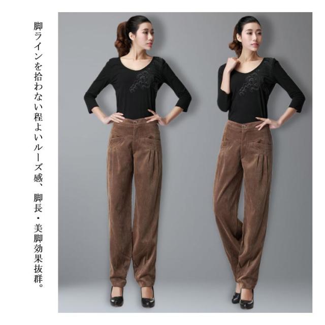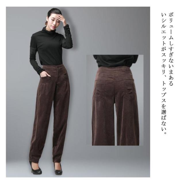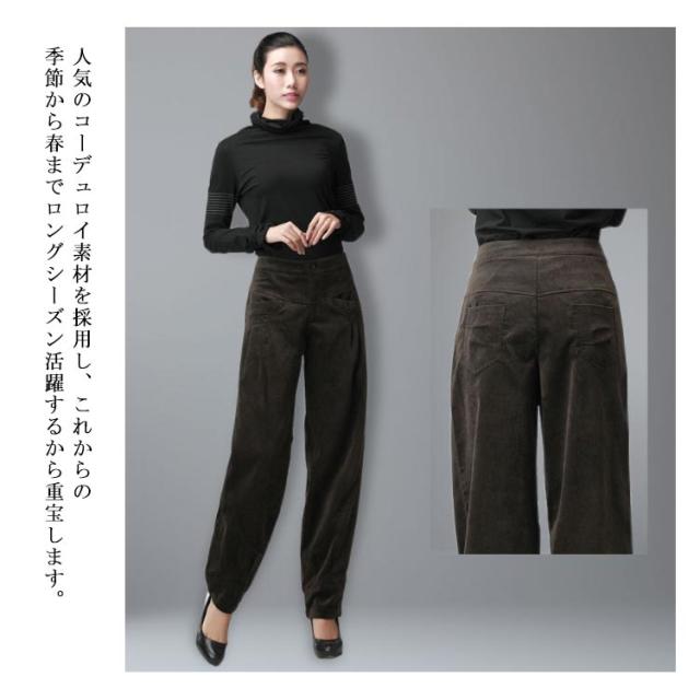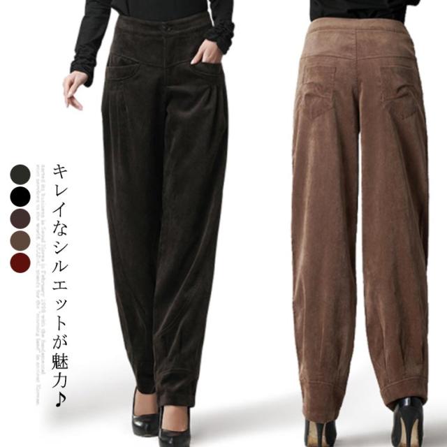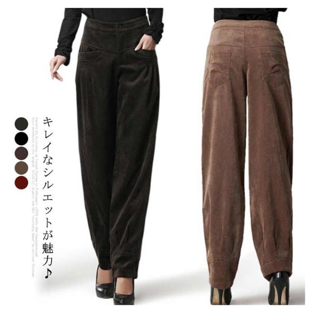 コーデュロイパンツ バルーンパンツ タック レディース 美脚 コクーン カジュアルパンツ サーカスパンツ ロングパンツ 秋冬 お出かけ 通勤 30代40代50代