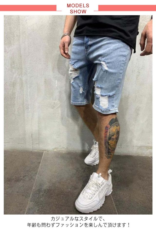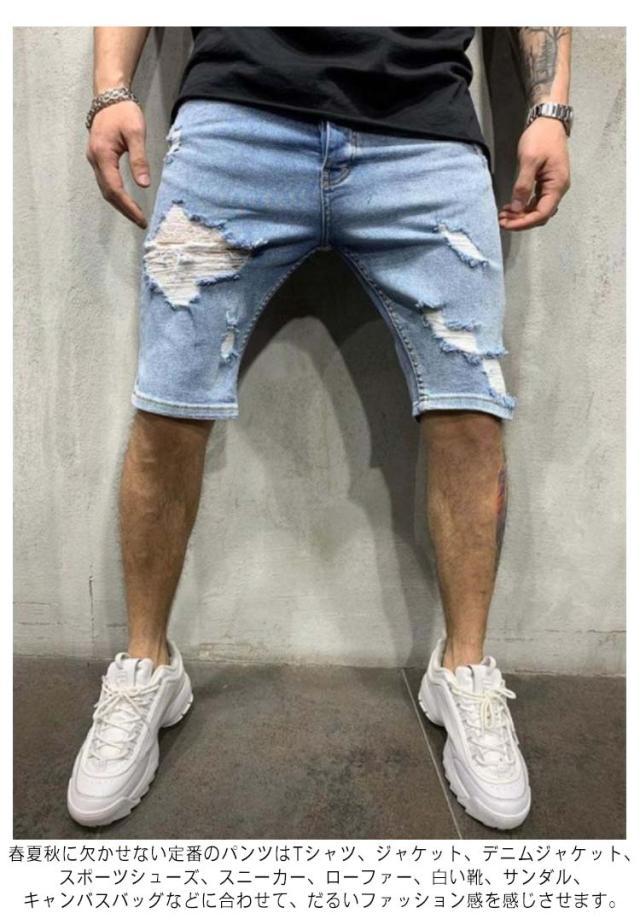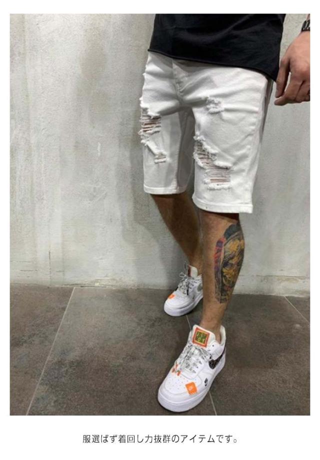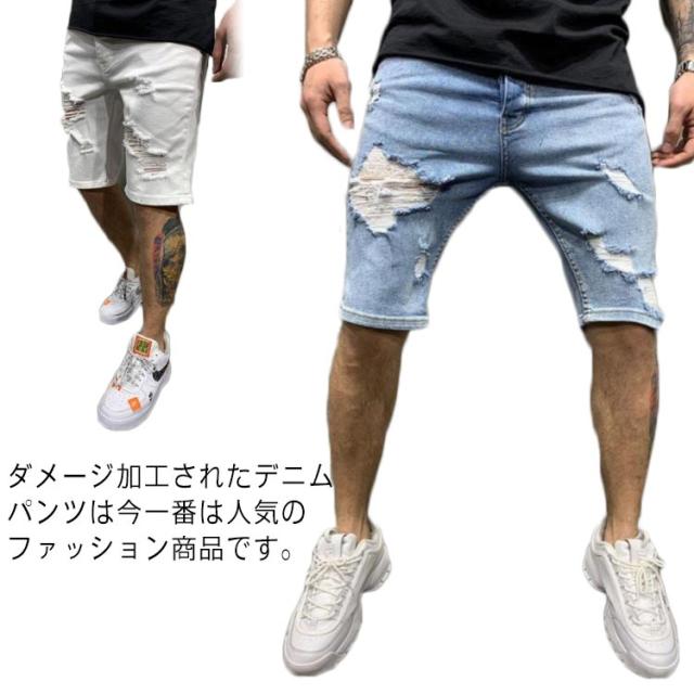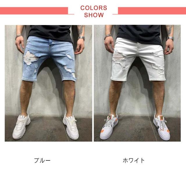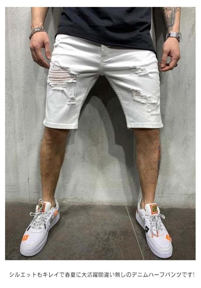 半ズボン デニムパンツ ジーンズ ダメージ加工 ハーフパンツ デニムパンツ ダメージ加工 ショートパンツ スリム 白 ショーツ ハーパン ストレッチ メンズ