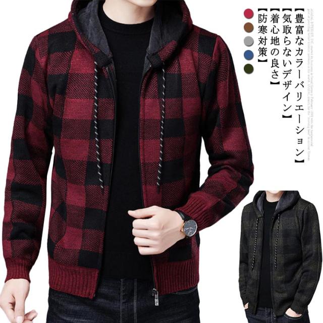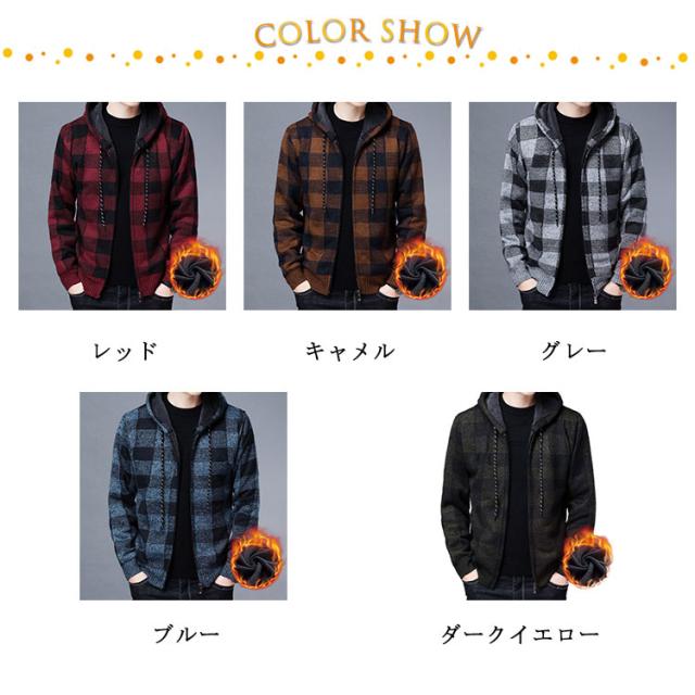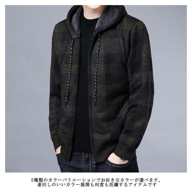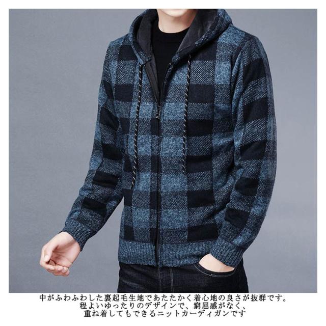 ニットカーディガン 厚手 メンズ 長袖 裏起毛 カーディガン 秋冬 フリースジャケット ジャンパー プルオーバー トップス 大きいサイズ 防寒 ジップアップパーカー アウター 送料無料