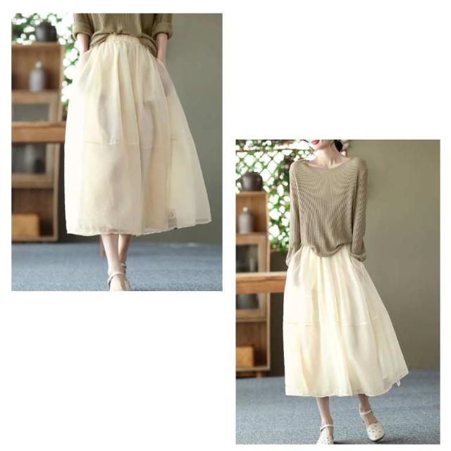 | 繊細なチュール素材のスカートです ふんわりとエアリーで軽やか&程よいボリューム感がGOOD バイカラーで仕立てて、ふわふわのような美しい表情に仕上がっています 上品でロマンティックな気分でコーデが楽しくなる1枚♪ シンプルなので、ロゴTやボーダーのトップスをコーデしても可愛いです | |