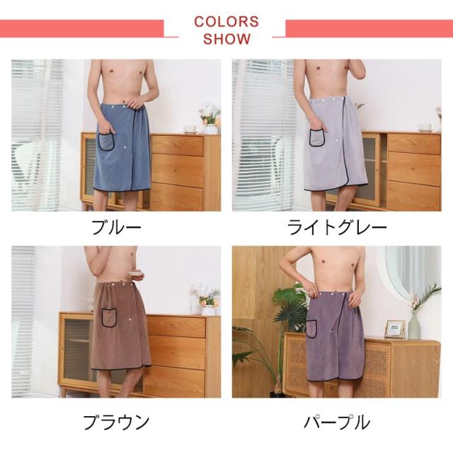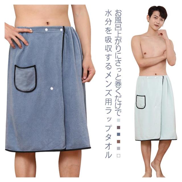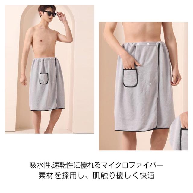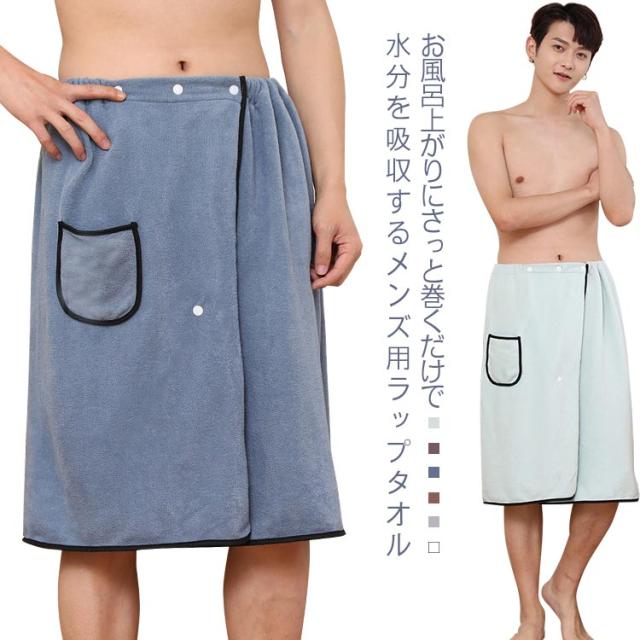 ラップタオル メンズ 巻きタオル バスタオル マイクロファイバー お風呂タオル 吸水 バスローブ ポケット付き お風呂上がり 男性 大人用 お着替えタオル 着脱簡単 スカートタオル バスローブ 温泉 スイミング ビーチ プール 海水浴 ジム 送料無料