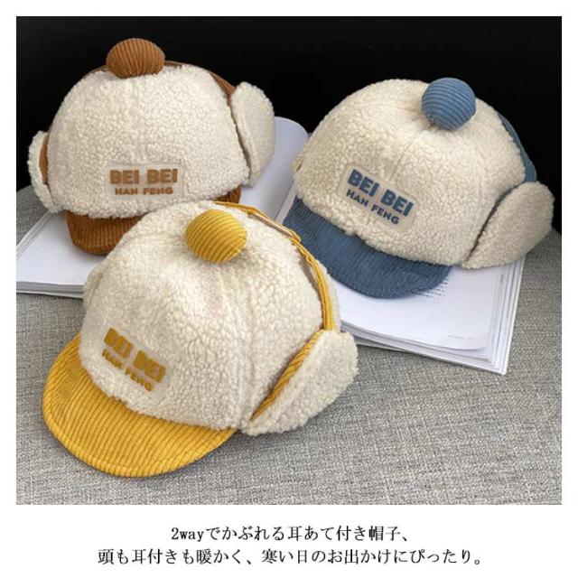 | もこもこふわふわ超可愛いパイロットキャップ。 見た目も被り心地もあったかボアキャップ。 2wayでかぶれる耳あて付き帽子、頭も耳付きも暖かく、寒い日のお出かけにぴったり。 可愛いカラー全5色展開、男の子も女の子もよく似合います。 | |