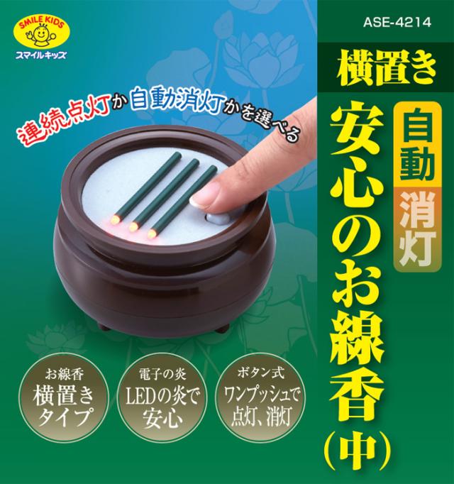 火を使わない安全・安心のお線香です。スイッチをONすれば、線香の先端が赤く光ります。