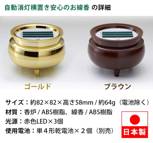led線香 自動消灯 横置き 安心 お線香 電池式 火 使わない LED せんこう 仏壇 神棚 連続点灯 3本 煙の出ない 電子線香 火災防止 火事対策 日本製