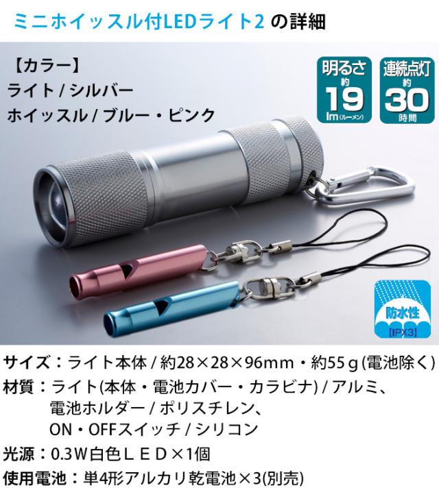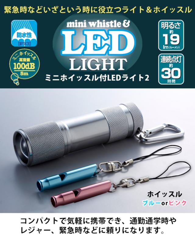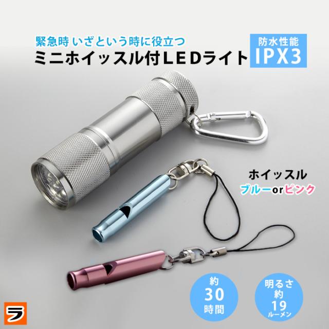 ハンディライト ミニホイッスル付き ledライト コンパクト 懐中電灯 ポータブルライト 緊急用ホイッスル 笛 アルミホイッスル 電池式 ホイッスル 登山 災害時 防犯 停電 非常用 災害対策 防災グッズ