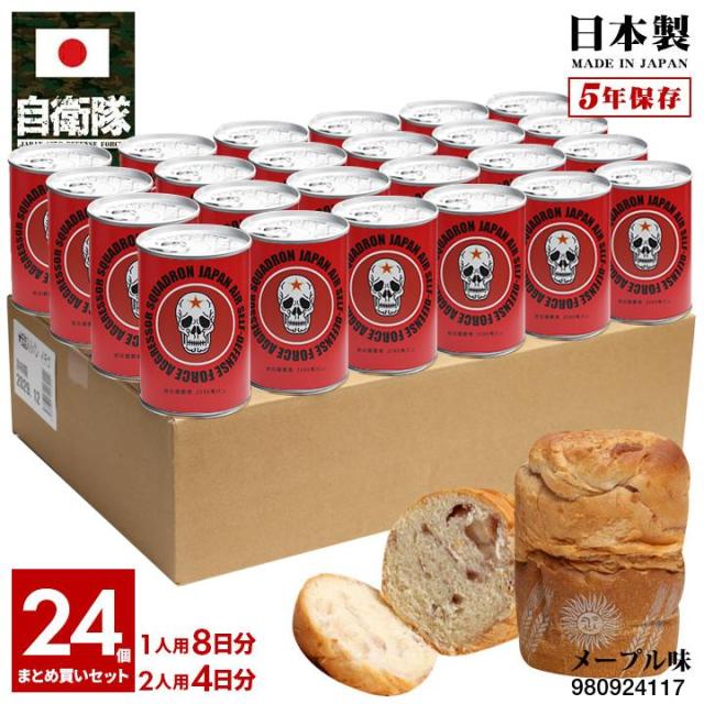 【ご注文後10日前後で発送】缶詰パン 24缶セット 自衛隊 グッズ アグレッサー 飛行教導群 ドクロ 小松基地 F15 空自 しっとり おいしい 非常食 パン メープル味 キャラメル味 長期保存 5年 日本製 缶詰 赤 航空自衛隊 スカル 防災備蓄食 航空 PX品 JT-MS-RT-032-24P