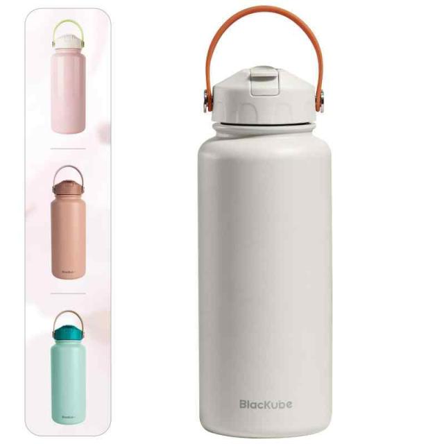 Blackube 水筒 ストロー付 (白, 1000 ml)