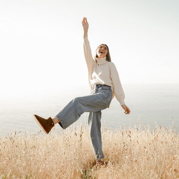 メイド・イン・オーストラリアのムートンブーツ。オーストラリアの靴職人が定番の【Stinger】を最高品質のシープスキンで丁寧に作り上げた斜にカットした履口の新しいデザインのプレミアムなムートンブーツ。
