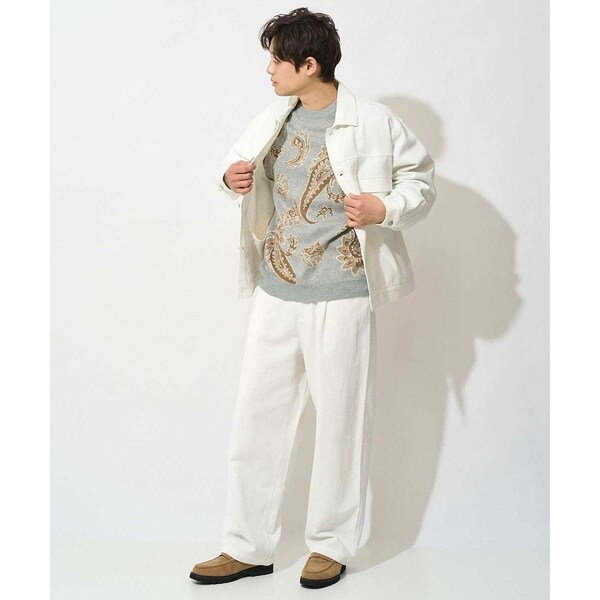 腰回りにゆとりを持たせ、裾にかけて少しテーパードをさせた大人の1タックワイドパンツ。
