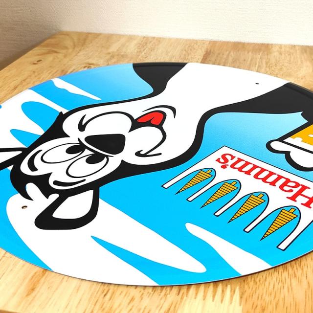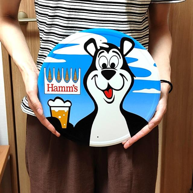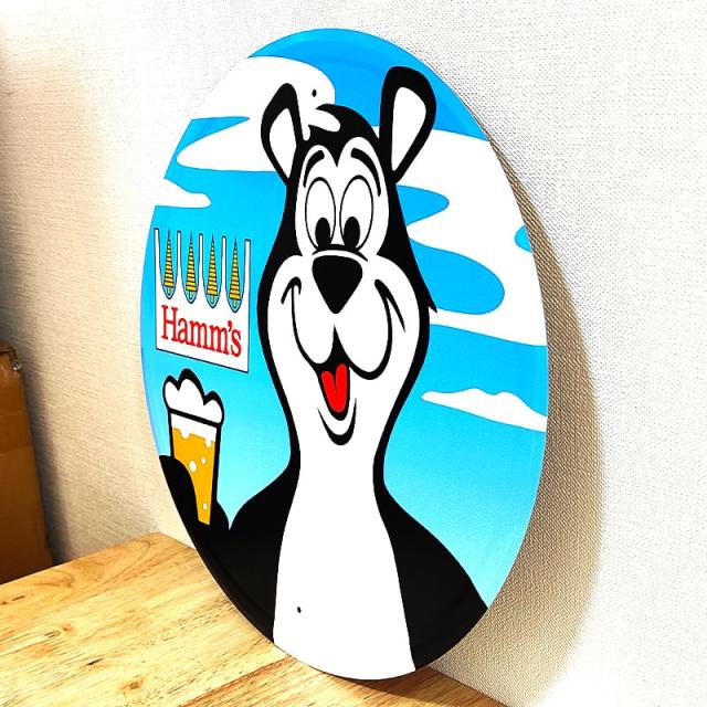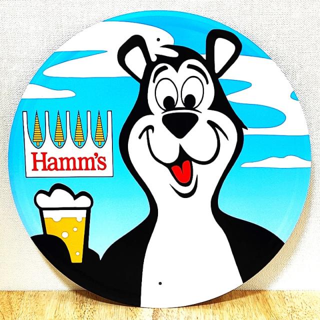 アメリカのビール醸造会社、ハムズビールのマスコットキャラクターがデザインされたブリキ看板です!