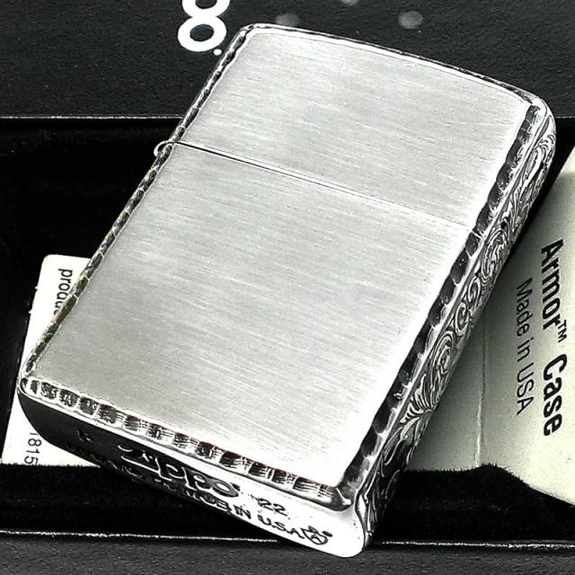 ZIPPO アーマー サイドアラベスク シルバー ジッポ ライター イブシ仕上げ リューター加工 渋い シンプル かっこいい 重厚