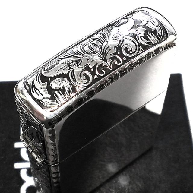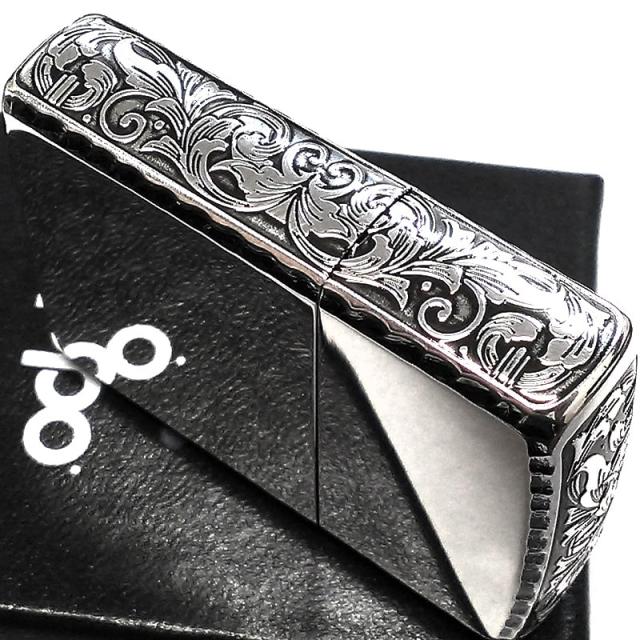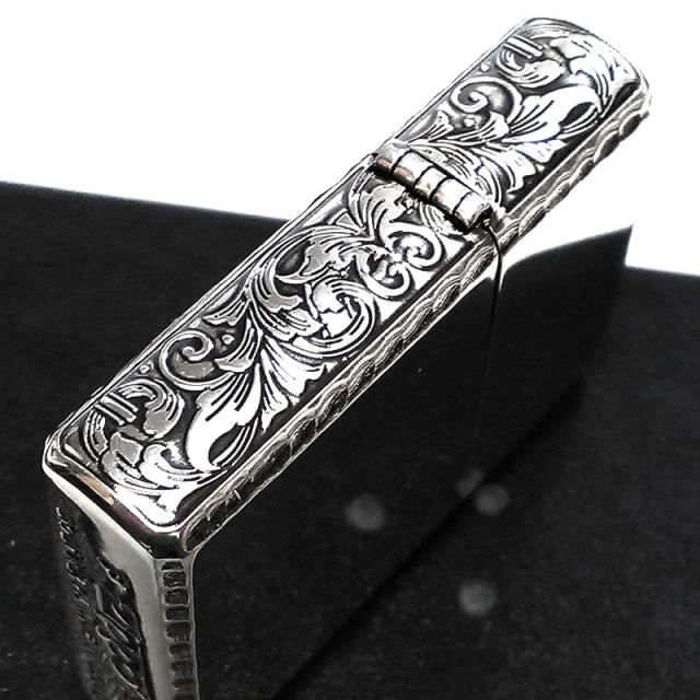 サイド、天面に繊細なアラベスク模様の彫刻デザインをあしらった、おしゃれで高級感あるZIPPOライター。