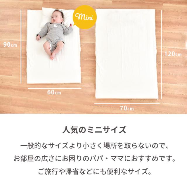| ご注意 | ※うつぶせ寝でのご使用は窒息の危険が高まりますのでお避け下さい。1才になるまでは、寝かせる際は仰向けに寝かせてください。 ※シーツはしわやたるみができないように裏側でしっかり固定した上で使用してください。 ※まくらは仰向け寝の時にのみご使用ください。 ※できるだけ実物と同じ色合いになるようにしていますが、パソコンモニタの環境などによって実物と色合いが異なる場合がございます。予めご了承ください。 ※重さの表記をしておりますが、およその値です。わずかですが個体差があることをご考慮下さいませ。 |