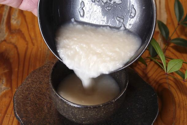 日本酒と同じく米麹(こうじ)、蒸し米および水で仕込むお酒ですが、発酵してできた「もろみ」を濾過(ろか)することなくそのまま飲むのが特徴。健康に良いとされる米粒や麹、酵母がそのまま入っている生酒です。 甘酸っぱい味で、腹もちが良く、庶民の酒として昔から愛飲されていました。
