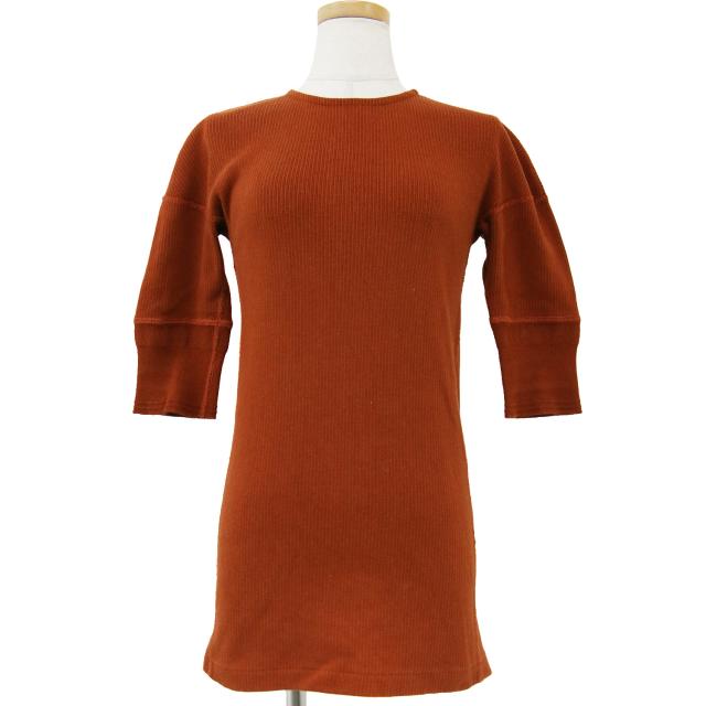 FUMIKA UCHIDA フミカウチダ カットソー ブラウン M 半袖 5分袖 リブニット バックリボン テープ コットン 綿 トップス 大人 きれいめ シンプル カジュアル【レディース】【中古】【K3974】