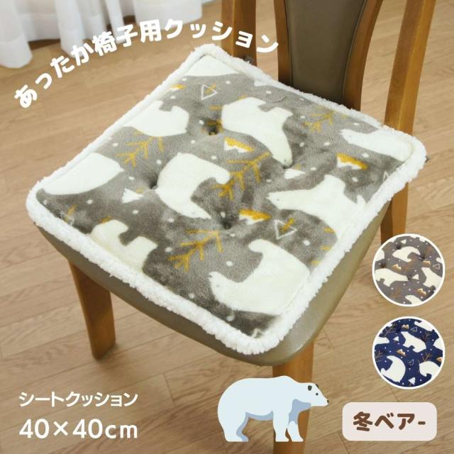 椅子用クッション 角型 かわいいベア柄 ブラウン色 40x40cm ひも付き かわいいフリル付 冬用