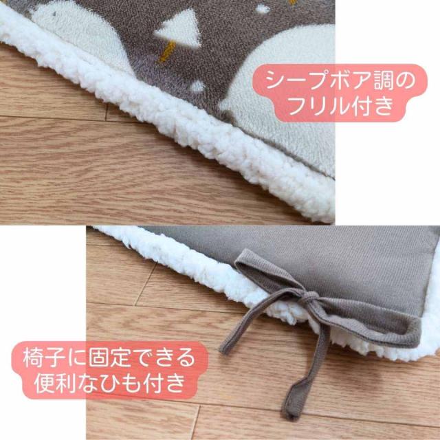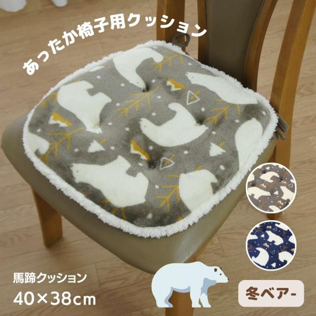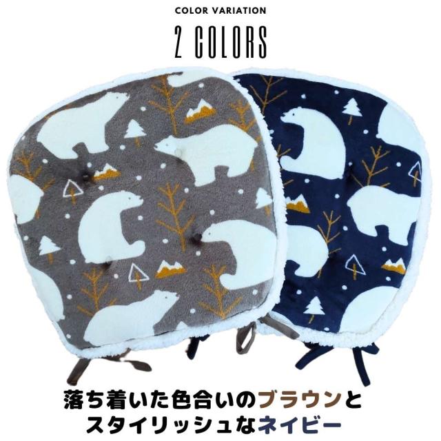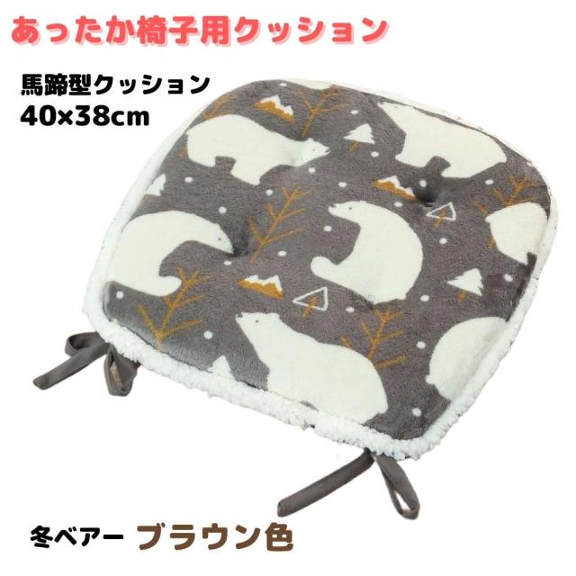 椅子用クッション 馬蹄型 かわいいベア柄 ブラウン色 40x38cm ひも付き かわいいフリル付 冬用