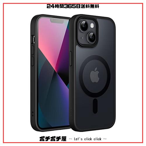 JEDirect iPhone 13 6.1インチ用 マグネット ケース MagSafeに対応 半透明のマット背面 薄型 耐衝撃 カバー (ブラック)