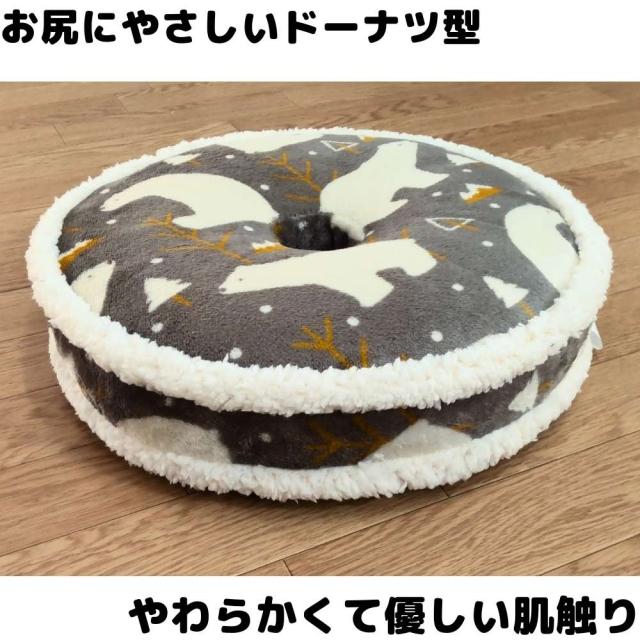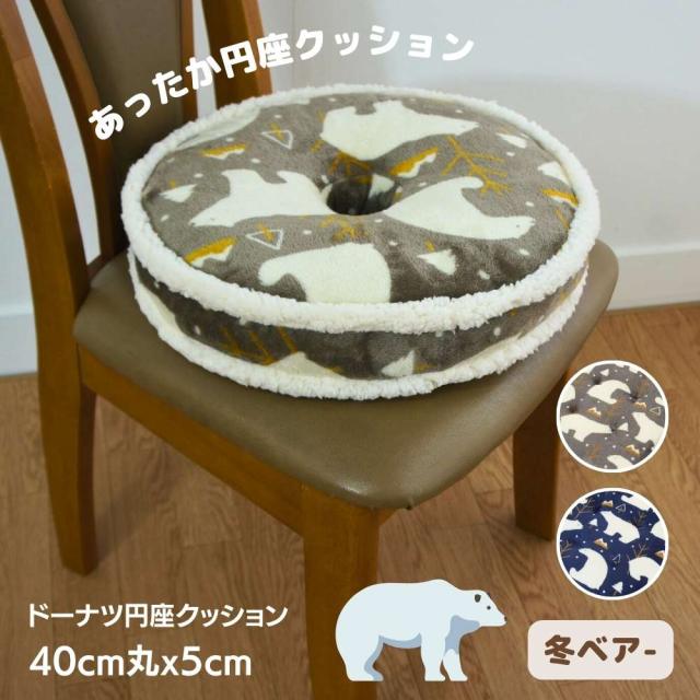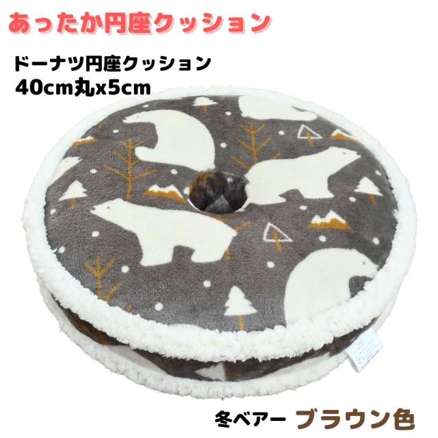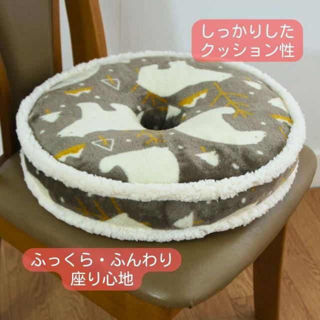 ドーナツ円座クッション かわいいベア柄 ブラウン色 40cm丸x5cm お尻にやさしい かわいいフリル付 冬用