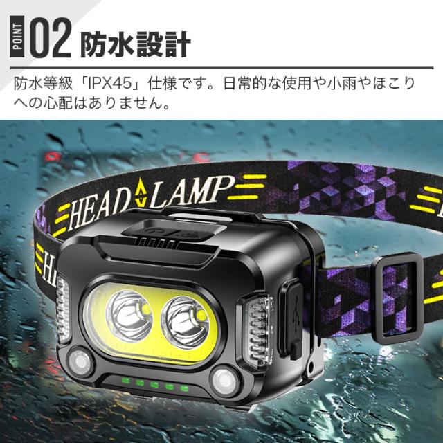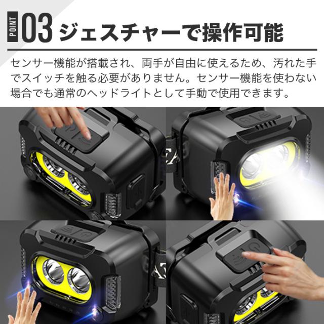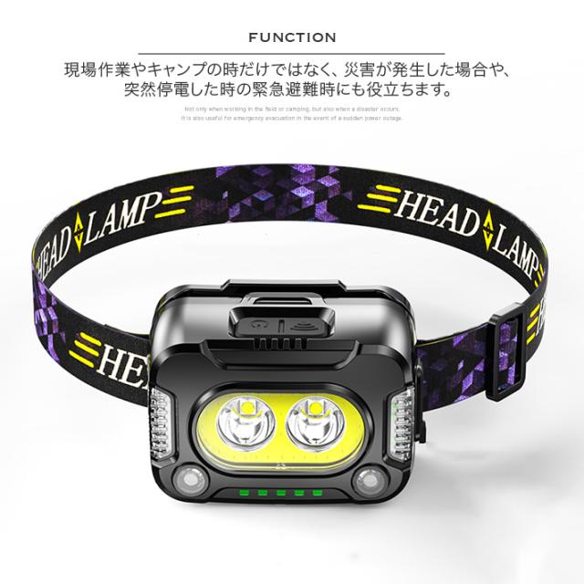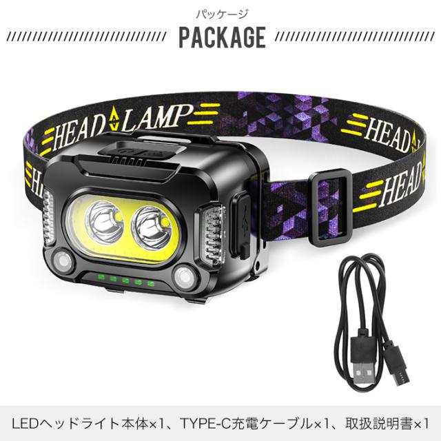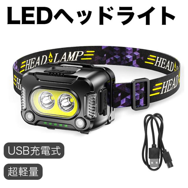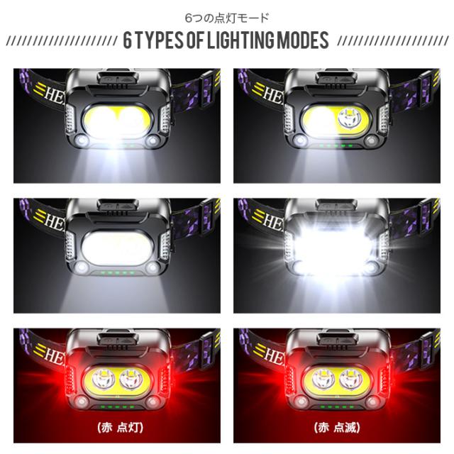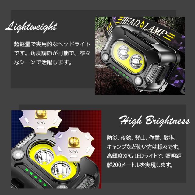 LEDヘッドライト XPG LED COBLED ヘッドライト 充電式 センサー機能 6モード点灯 電源残量表示 防水 超軽量 角度調整可