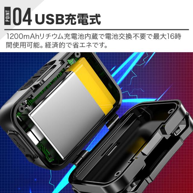 1200mAhリチウム充電池内蔵で電池交換不要で最大16時間使用可能。経済的で省エネ。マスホ、パソコン(PC)、AC充電器、モバイルバッテリーなどから便利に充電できます。側面には電源残量表示のライトがあり、電池切れの心配はありません。