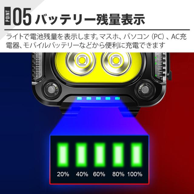 LEDヘッドライト XPG LED COBLED ヘッドライト 充電式 センサー機能 6モード点灯 電源残量表示 防水 超軽量 角度調整