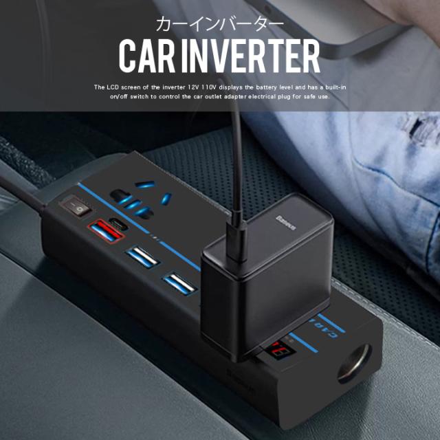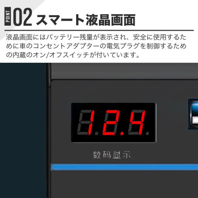 インバーター12v 110vの液晶画面にはバッテリー残量が表示され、安全に使用するために車のコンセントアダプターの電気プラグを制御するための内蔵のオン/オフスイッチが付いています。