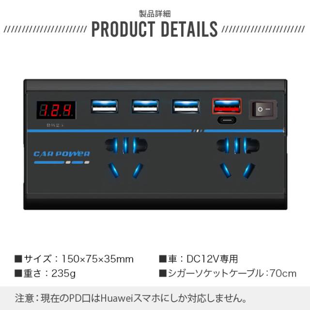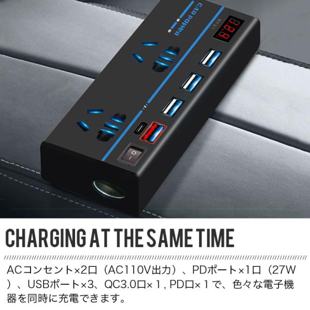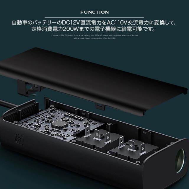日本仕様 200W 5ポート カーインバーター コンバーター シガーソケット コンセント 変換 車載充電器 車コンセント 車載