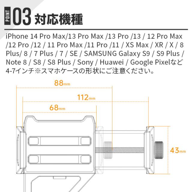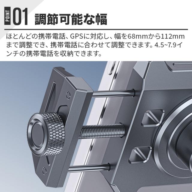 ほとんどの携帯電話とGPSに対応し、幅を68mmから112mmまで調整でき、携帯電話に合わせて調整できます。4.5〜7.9インチの携帯電話を収納できます。
