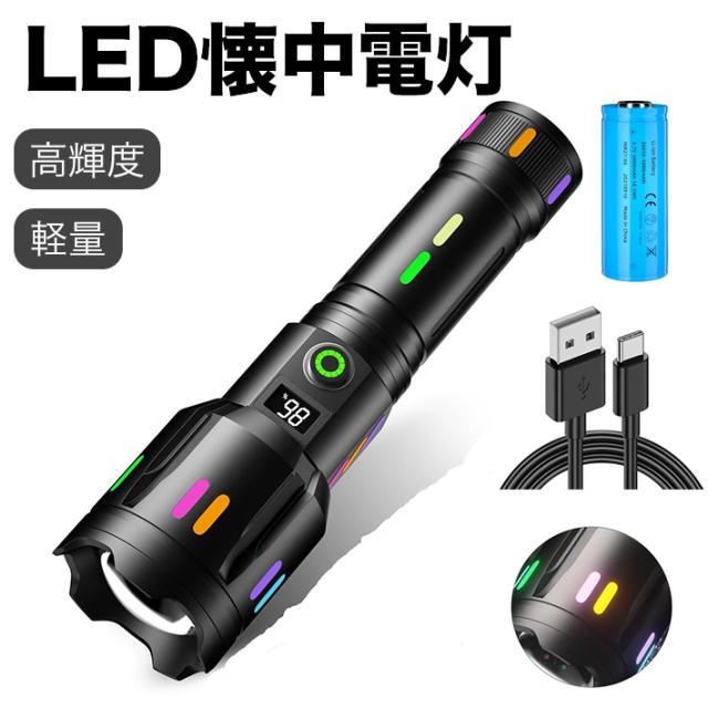 最新液晶画面 夜光懐中電灯 LED 強力 4000ルーメン 超高輝度 無段階ズーム機能 充電電池 ハンディライト USB充電式