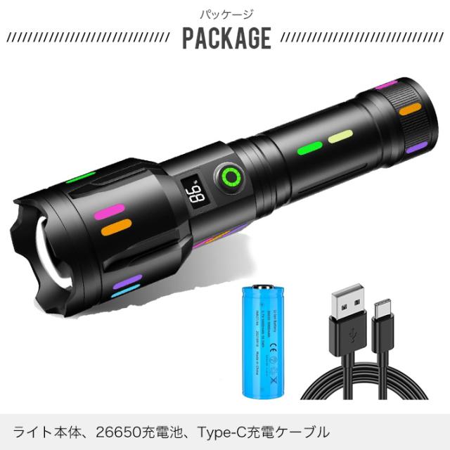 ライト本体、26650充電池、Type-C充電ケーブル