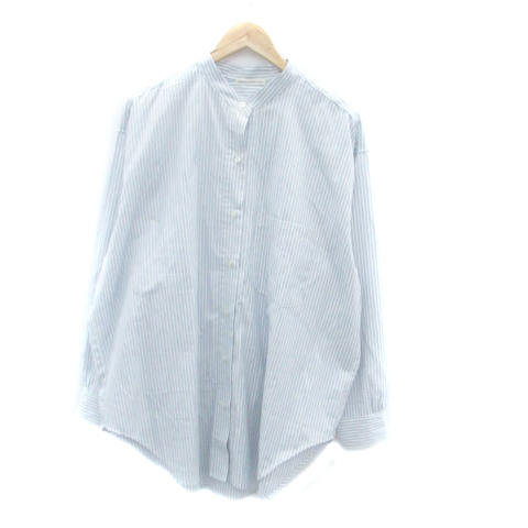 【中古】ナイスクラップ カジュアルシャツ バンドカラー 長袖 ストライプ柄 F オフホワイト 水色 レディース