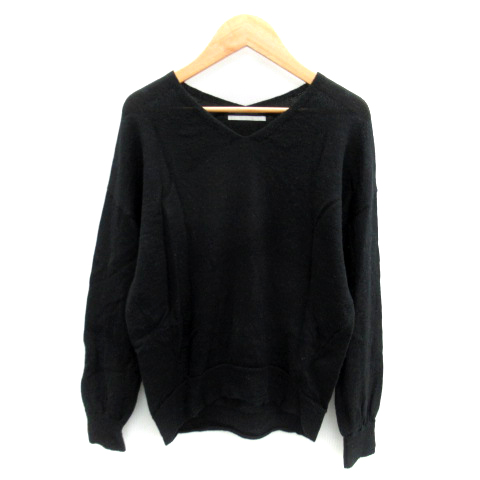 【中古】アーバンリサーチ ニット カットソー 長袖 Vネック 無地 ウール F 黒 ブラック /SY26 ■MO レディース