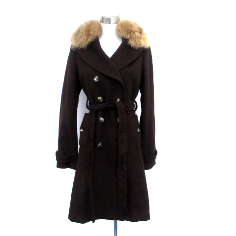 【中古】ピエスモンテ Pコート ピーコート ロング丈 リボンベルト付き カシミヤ混 38 ダークブラウン レディース