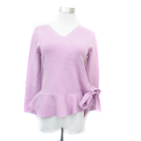 【中古】ケティ KETTY ニット カットソー Vネック 長袖 リボン 3 ピンク /HO41 レディース