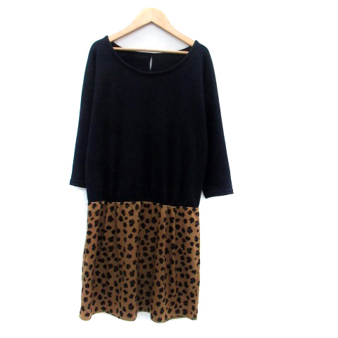 【中古】フレディクルール fredy couleur ドッキングワンピース 七分袖 ひざ丈 ヒョウ柄 38 紺 茶色 レディース