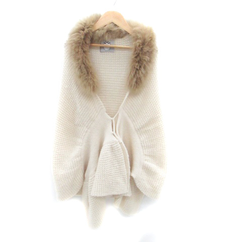 【中古】リランドチュール カーディガン ニットポンチョ ミドル丈 モヘヤ混 99 オフホワイト 茶色 レディース