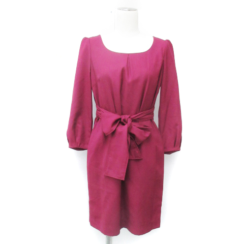 【中古】プロポーション ボディドレッシング フレアワンピース ミニ丈 長袖 Uネック リボン 総柄 3 赤 レディース
