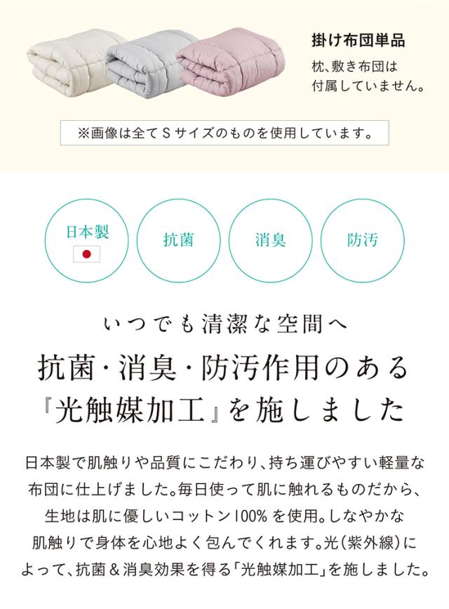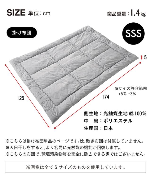 日本製 掛け布団 掛布団 シングルスリムショートサイズ 単品 174x125cm ふとん 布団 寝具 国産 二段ベッド用 三段ベッド用 システムベッド用 ロフトベッド用 光触媒加工 SSS toco(トコ) 3色対応