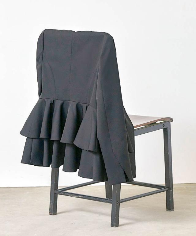 立体的なペプラムフリルがふんわりと華やかなジャケット。気になる腰まわりもカバーしてくれます。