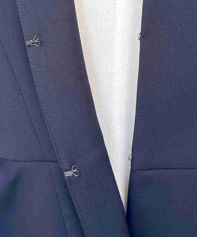 ■素材:ジャケット、表地 ポリエステル94%、ポリウレタン6%、裏地 ポリエステル100%、、WH(アイボリー)、パンツ、表地 ポリエステル94%、ポリウレタン6%、裏地 ポリエステル100%、、BL(ブラック)/NE(ネイビー)、パンツ、表地 ポリエステル94%、ポリウレタン6%