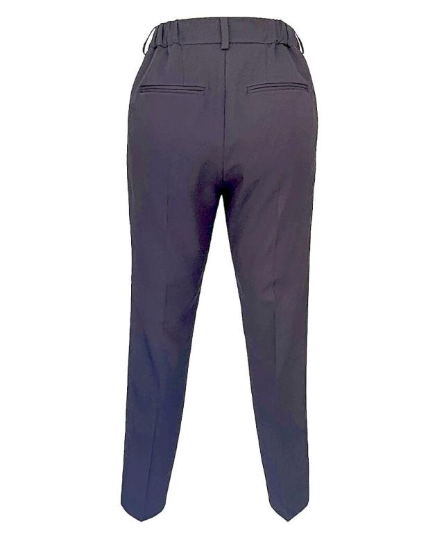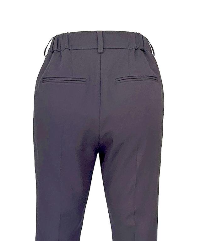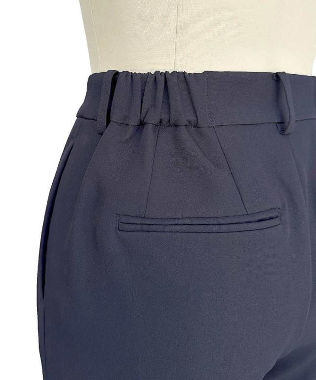 センターラインに施した立体的なピンタックが脚全体をすらりと見せ縦長効果を発揮してくれるスリムパンツ。