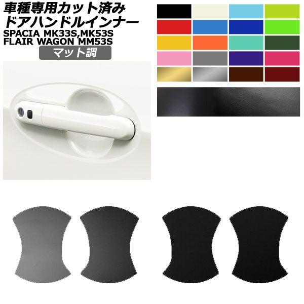 ドアハンドルインナーステッカー マツダ スズキ フレアワゴン スペーシア MM53 MK33,53 全グレード対応 マット調 色グループ1 入数:1セット(4枚) AP-PF2CFMT0084 色グループ1: ブラック ホワイト レッド ブルー イエロー オレンジ ピンク グレー ゴールド シルバー