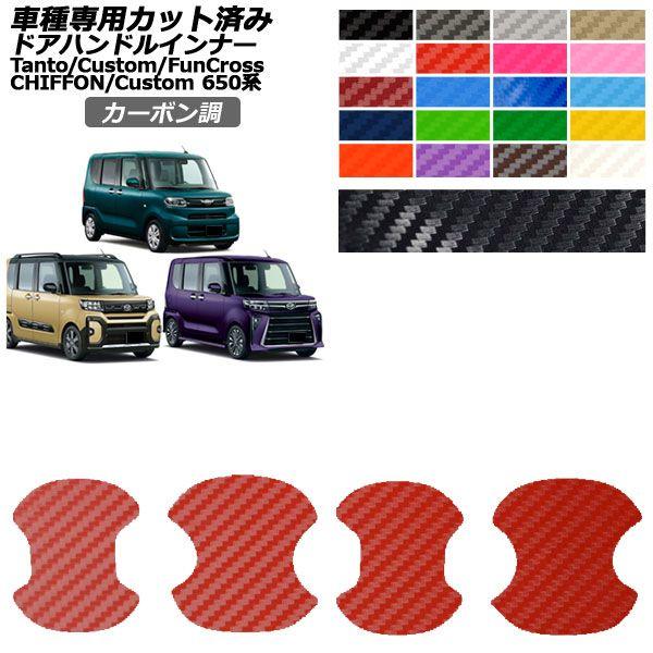カーステッカー スバル ダイハツ シフォン/カスタム タント/カスタム/ファンクロス 650系 2019年07月〜 カーボン調 ドアハンドルインナー 外装 選べる20カラー 入数:1セット(4枚) AP-PF2CF0089 カラー: ブラック ホワイト レッド ブルー イエロー グリーン オレンジ パープル ピンク ネイビー ブラウン ボルドー クリア ゴールド シルバー ガンメタリック マゼンタ ダークグリーン メタリックブルー ライトブルー