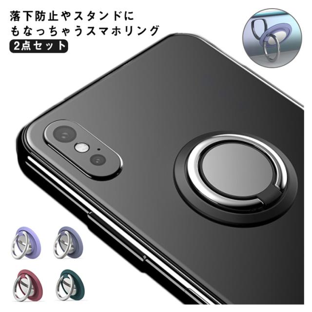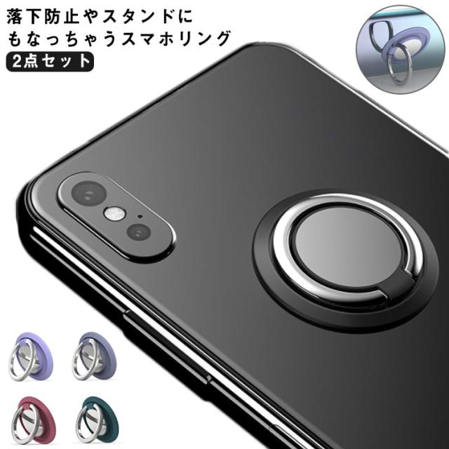2点セット スマホリング スタンド 落下防止 バンカーリング 薄型 シンプル オシャレ スマホ リングホルダー iPhone Galaxy リングスタンド メタリック 使いやすい 360度回転 カラフル くすみカラー 韓国 全機種対応 送料無料