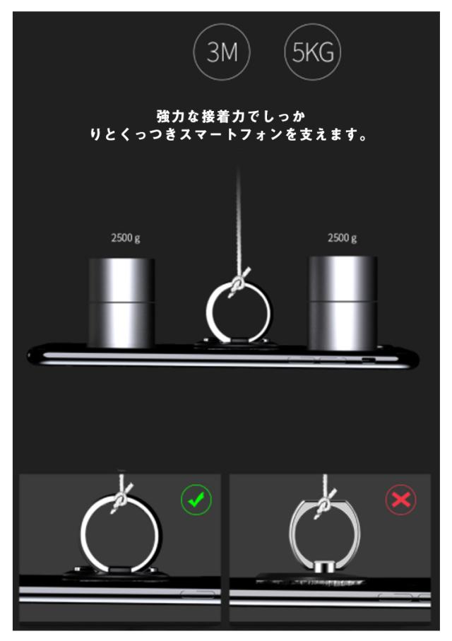 | シンプルで使いやすい、薄型タイプのバンカーリング。 サッと指にはめるだけで片手でスマホを自在に操作、様々なシーンで活躍します。 マットな質感とリングなどのメタリックな質感がオシャレ! 小さいスマホからタブレットまでどんなサイズにも取り付け可能。 リングの裏面は3M社製の粘着テープでスマホとしっかり接着します。剥がしても跡が残りにくく、綺麗に剥がせます。 リングの角度を変えれば動画視聴に便利なスタンドとして使用が可能です。 動画視聴やビデオ通話も楽しむことができます。 | |